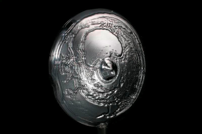 This is a silicon boule that started growing nicely, and then just when it reached a nice diameter, they stopped it for some reason. It looks like they just pulled it out of the melt, causing the bottom surface to have an irregular molten appearance. It was described by the seller as being a test piece, what exactly they were testing I don't know.