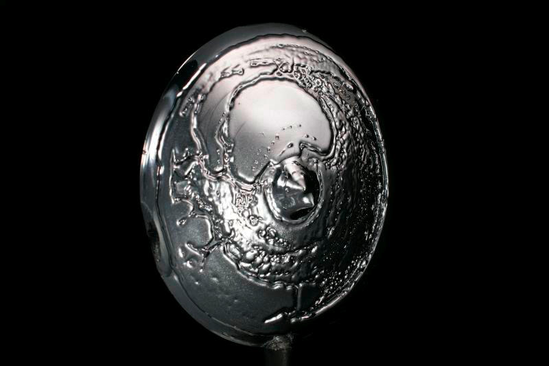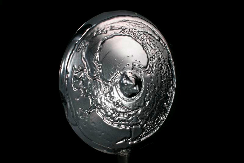 This is a silicon boule that started growing nicely, and then just when it reached a nice diameter, they stopped it for some reason. It looks like they just pulled it out of the melt, causing the bottom surface to have an irregular molten appearance. It was described by the seller as being a test piece, what exactly they were testing I don't know.