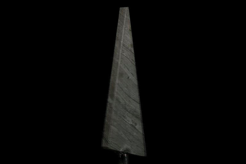 This sample is a modern example made with the pattern-welding technique. It is made in a "twist" pattern out of 1095 and O1 steels with 8% pure nickel twisted in, so says Michael Z. Williamson the author and knife expert who donated this sample to my table.