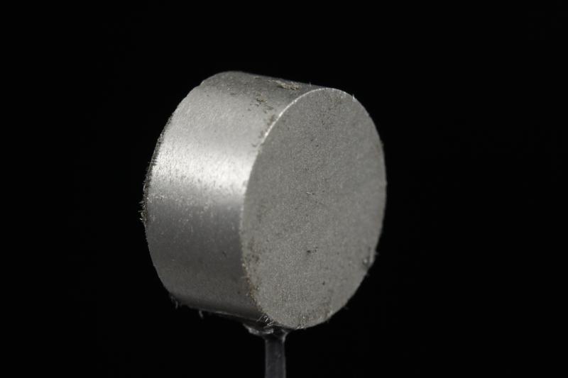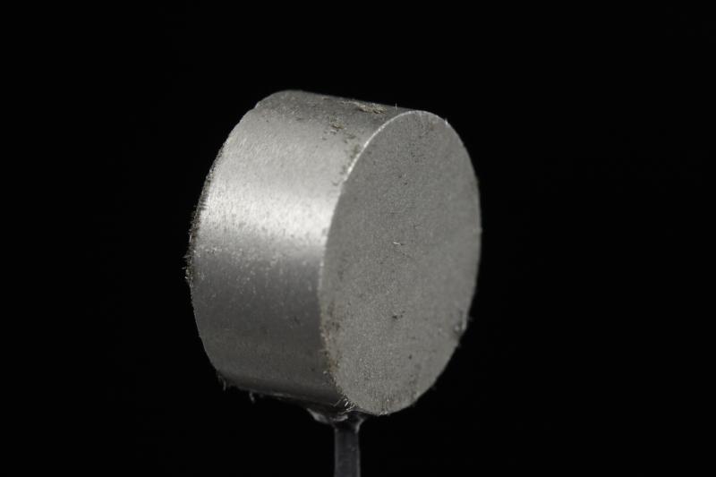 Several different rare earths are used, typically in combination with iron, cobalt, or boron, to make very strong magnets. Neodymium-iron-boron magnets are stronger than this samarium-cobalt magnet, but it's still a pretty nice magnet for its size.