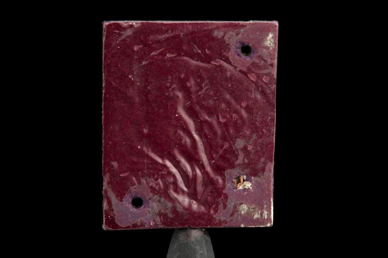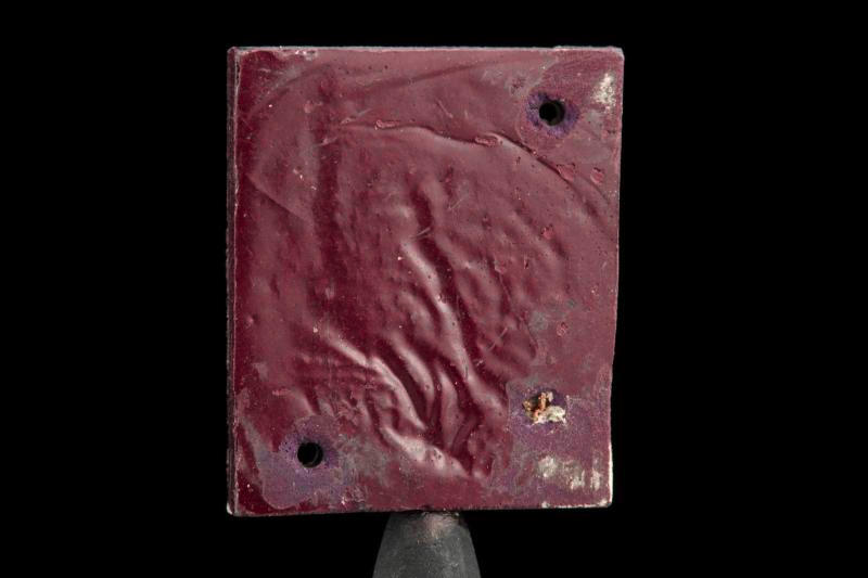 So, nowadays, very small (around the size of a grain of sand) perfect single crystals of LaB6 are grown to be used as the most common filament in modern electron microscopes. When I say perfect, I mean that the surfaces of the crystal are not far off from being atomically flat. This is not actually accomplished through the growing process, but rather the post-growth treatment and "polishing." Other cathode materials can be used for various reasons (tungsten metal is still common), but lanthanum hexaboride is widely regarded as the best performing and most reliable. Which neatly segues to this sample: one glance tells us that this is not a single crystal, and it is actually a good-sized chunk. This piece dates from approximately 40 years ago, when lanthanum hexaboride was just discovered as an interesting material. I'm not quite sure which particular property was being investigated with this sample, but all of the compound's electronic properties were measured exhaustively--conductivity, Hall effect, and then that nifty work function. The large white patches and holes in the corners are an artifact of this battery of tests--wires were wrapped around the material through the holes, and an epoxy filled with tiny silver particles was applied to cement these measurement wires in place and guarantee a good electrical connection (so this is actually two element samples in one!). As for the wavy surface texture in the back, I'm not sure- certainly it ended up like that from whatever method was used to fabricate this small block of the material, but I'm not sure what might cause that particular appearance. Bathe in the purple glory of this beautiful and interesting compound that was completely unknown to science when your parents were in school (almost no matter who you are).